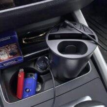 Measuring 4.3 x 3.4 x 3.2in / 110 x 88 x 82mm, our charger fits standard vehicle cup holders for a snug fit. Simply plug in the port adapter to power up the cup!