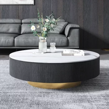 Luxury Marble Round Coffee Table with Gold Stainless Steel Base