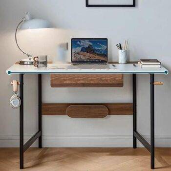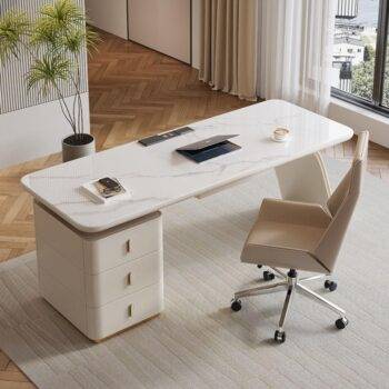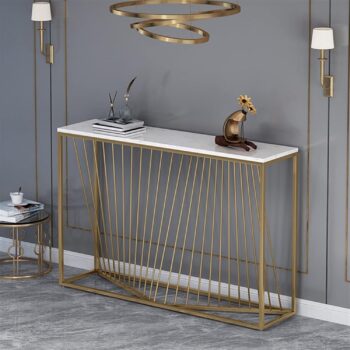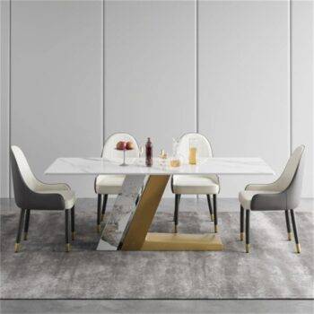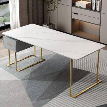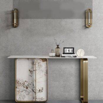Marble-Textured Wood MDF Coffee Table with Stainless Steel Frame