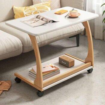 Mobile C-Shaped Side Table with Wheels – Multipurpose Bedside & Coffee Table