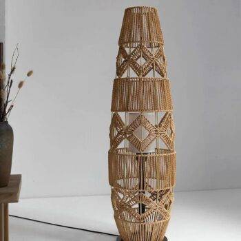 Zen Art Decorative Rattan Weave & Hemp Rope Floor Lamp – Japanese Inspired LED Standing Light