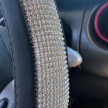 From glam convertible to sleek sports sedan, our Rhinestone Steering Wheel Cover will make you shine bright. It’s designed to fit steering wheels 4.93in / 38cm in diameter, so make sure you measure and confirm fit before purchase.