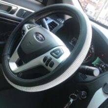 I love all that sparkles. Apart of me wishes that it was sparkly all the way around. But it’s pretty. I’ve had this steering wheel cover for about two weeks. It looks great, and it fits my Ford Escape perfectly. It was difficult to get it on, but I would except it to be. I’d definitely recommend it.
