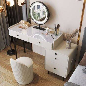 Chic Modern Makeup Vanity Table with LED Mirror and Chair Set