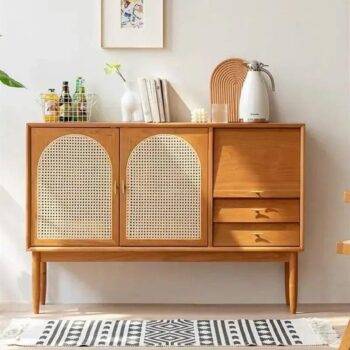 Solid Wood Japanese Rattan Tea and Book Cabinet: Modern Elegance for Your Home
