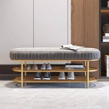 Versatile Velvet Shoe Bench – 2-Tier Ottoman Storage for Modern Homes